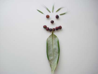 もらった、花の実と種と葉っぱで”ネクタイをした人”をつくってみました。