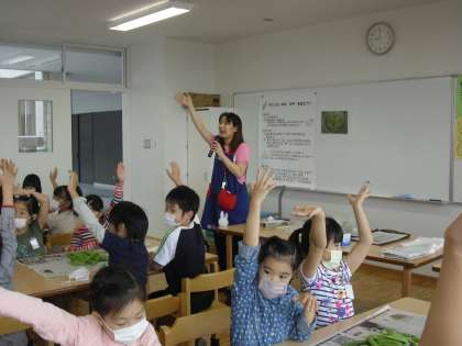 栄養士の先生から「今日の給食のご飯は君たちと作るんだよ」と言われると、子ども達はとても張り切って、一生懸命取り組んでいました。