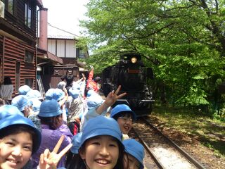 大音量の汽笛に尻餅をつく子もいました!