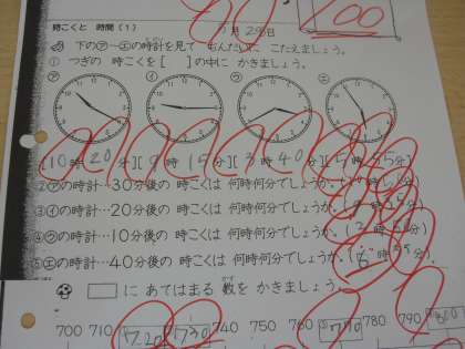 今日は、「時間と時こく」「カタカナ」をやりました。