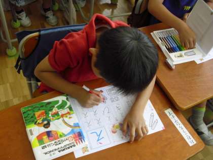 1年生は、今、一生懸命ひらがなの学習をしています。