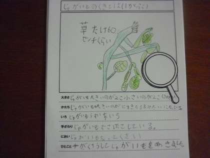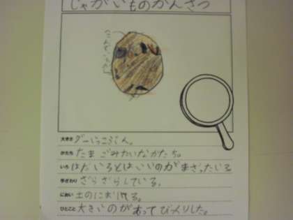 じゃがいもは、いろいろな形があって大きいものからとても小さなものまであり、友達と比べていました。