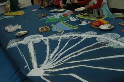 学芸会が迫ってきました。各学年、大道具・小道具をがんばってつくってます。劇の背景を描いているのは6年生です。どんな劇になるのでしょう・・・。