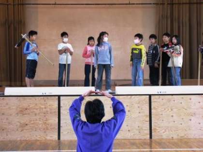 写真(中)・・・・先生の細かな注意を真剣に聞く子どもたち