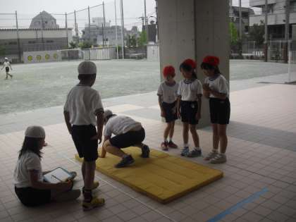 子どもたちから「去年よりどの種目も記録がよくなった。」、「シャトルランは30回も走れたよ。」など1年前に比べて成長した自分に喜ぶ声がたくさん聞こえました。