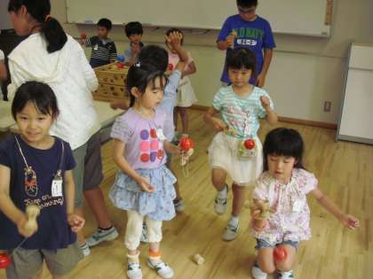 コマ名人やけん玉名人、あやとり名人がたくさんいます。