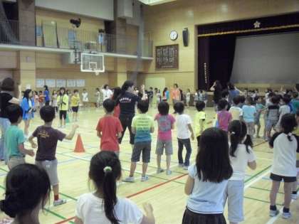 7月5日(土)に開催されるさくらっ子フェスタに向けて、地域の方やPTAの方が子どもたちに盆踊りの踊り方を教えてくださりました。