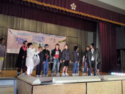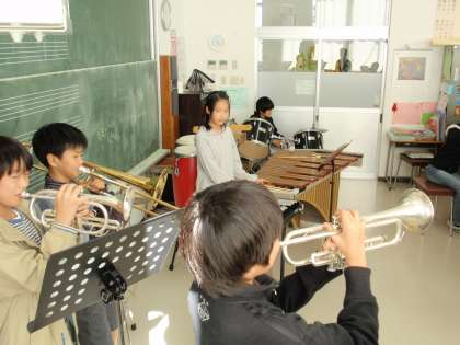 先生たちのアドバイスを受け、友達どおしで相談したり悩んだりしながら前進しています!音楽隊のメンバーは朝、昼、放課後と毎日練習を重ね、たった8人ですが素晴らしい音で舞台を盛り上げてくれています!