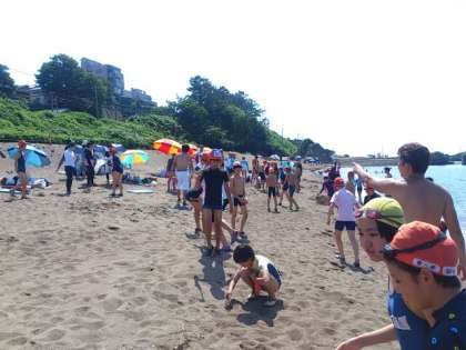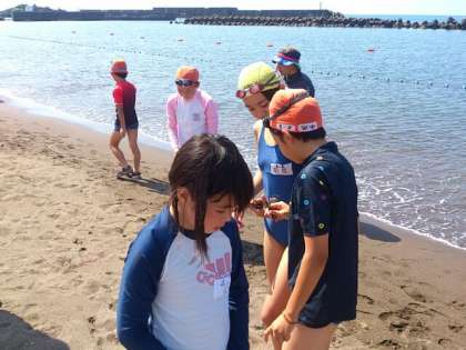 きれいなビーチですが、足を万が一にも切らないように確認します。
