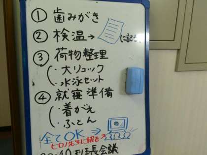 また、先生たちが、次にすべき行動を口頭指示とホワイトボードに示します。