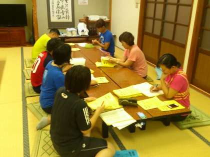 同じ頃、生活班の班長さんが集まり、班長ミーティングを開き明日の予定や生活の注意を確認します。