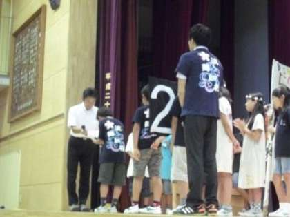 また、昨日行われた多摩川のいかだ下りの表彰式が行われました。5年生からは1チームが出場しました。結果は4位。優秀な成績を収め、温かい拍手をもらっていました。