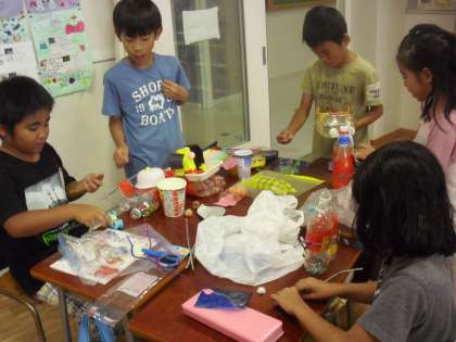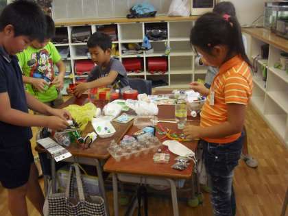 子どもたちは、いろいろ思考錯誤をしながら創作していました。