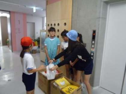 6年生は,低学年の教室に説明に行き,朝玄関で回収作業をしています。