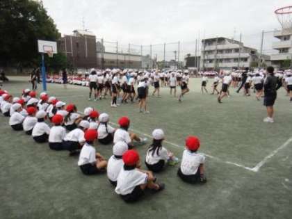 終わった後、高学年の跳ぶ様子を間近で見ることができました。縄を回す速さに驚いたり、みんなで「はい!はい!」と声を掛け合いながら跳ぶ様子を見たりして、「みんな、すごいなあ」「あんなふうに跳べるようになりたい!」と話していました。