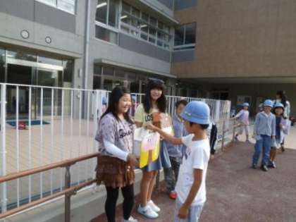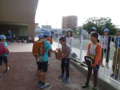 代表委員の児童が,朝8時〜8時20分の間,赤門の所に募金箱を持って立っています。