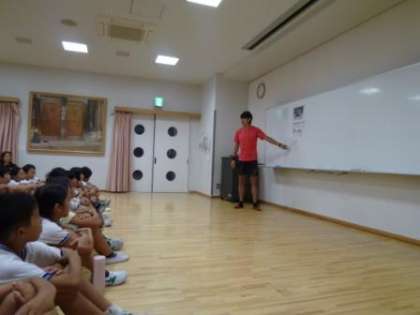 10月7日にプロ陸上選手の秋本真吾さんを招き,授業をしていただきました。