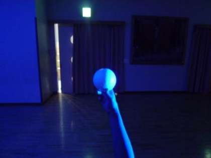 回転する椅子に座ってボールと一緒に回ってみると,