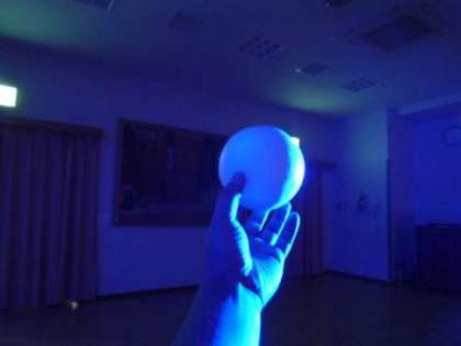 授業で月を見るのは難しいので,桜ホールで月の見え方を実験しました。