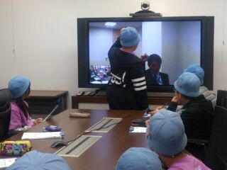 10トンもの重さのある扉の奥の貸金庫室に入ったり、大阪とのテレビ会議を体験したりしました。