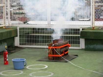 写真(下)・・・・・・打ち上げの瞬間。ものすごい音です。