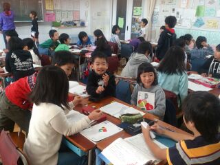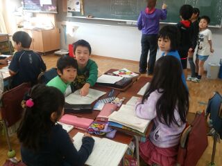 3年生が、国語で調べたいことを考え、グラフにして結果や考察を友達に発表する学習に取り組んでいます。