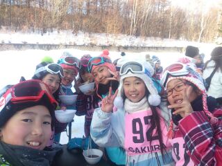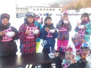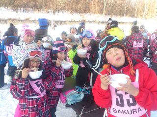 検定が終了し、宿舎のグランドでお汁粉をいただきます。
