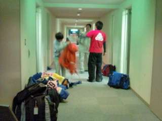 検温、洗面、着替え、布団たたみ、荷物出し。