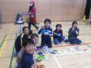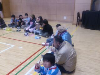 6年生は地域、桜小学校応援団、おやじの会、PTA担当者の皆さんにお餅をサーブし、一緒にいただきます。