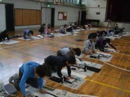 寒い中、心を落ち着け、一画一画ていねいに筆を進める様子、真剣な眼差しに、こちらにもいい緊張感が伝わってきました。