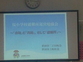 桜小学校を避難所とする世田谷二丁目町会、世田谷上町町会による避難所運営勉強会が開催されています。