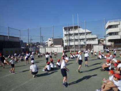 短縄では、6年生にみてもらいながら前跳びやグーパー跳びやあやとびなどの技に挑戦しました。