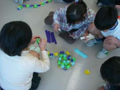 今日は、算数の時間に折り紙で輪飾りを作りました。