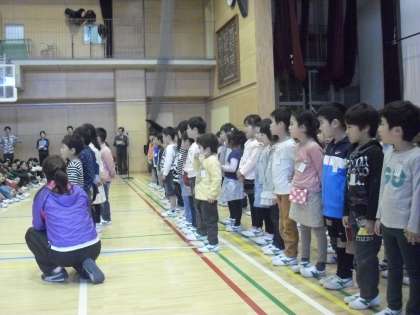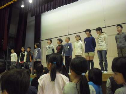 1年生の子ども達は、お兄さん・お姉さんに校歌のお礼を言って、「ドキドキドン!1年生」の歌のプレゼントをしました。