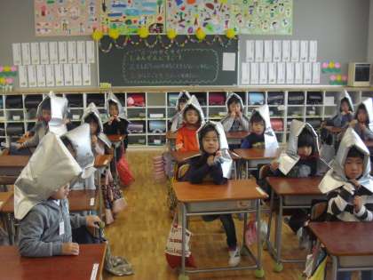 校庭に避難する時も、立派な態度で取り組むことができました。