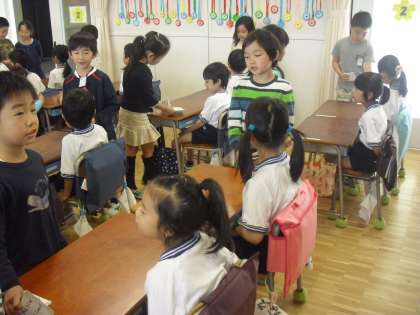 2年生のお兄さん、お姉さんが優しく自己紹介をしてくれて子ども達はとても喜んでいました。