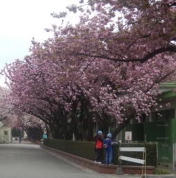 今年は例年よりも開花が早く、既にソメイヨシノの花は散ってしまいましたが、馬事公苑の八重桜は今が見頃です。生憎の雨でしたが、子ども達は自分だけのお気に入りのポイントを見つけ、真剣に筆を運んでいました。