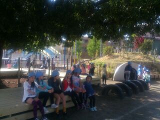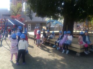 中にはかしの木の下のウッドデッキで友だちとまったりおしゃべりする子も。