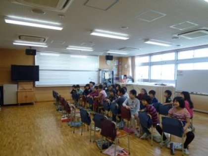歌うのも聴くのも一生懸命で,元気な歌声を響かせています。