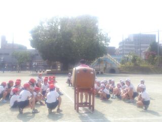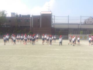 今朝は、応援団の子達が朝から、元気いっぱい練習に励んでいます。