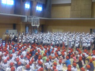 今朝は、全校で運動会の応援練習をしました。