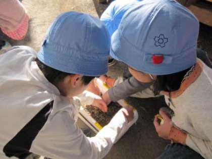 一人一つずつ、チューリップの球根を植えました。毎日水やりをして大切に育てています。