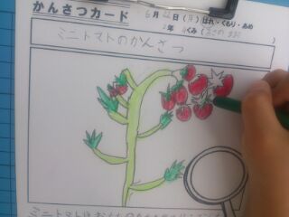 さすが2年生、1年生よりも細かな葉の形や付き方をよく観察しています。