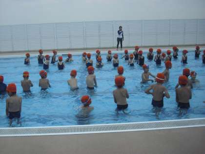 各クラスの代表児童が水泳学習のめあてを発表し、副校長先生からは安全についての大事なお話がありました。