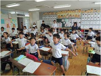 日本語では、物や人の形から作られた漢字の成り立ちについて学びました。地中に根を下ろしている木の形から「木」という漢字ができたことを知り、「なるほど〜」と言っている子もいました。