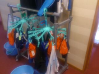 濡れた水着は先生方がゆすいで脱水をかけてくれました。