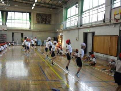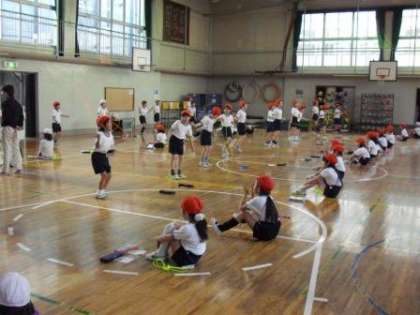 初回は、2分間に前跳びを何回跳べるかを記録しました。