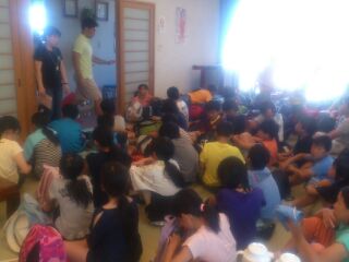 海泳ぎを終え、シャワーをあびて宿舎を出発する最終確認をします。
