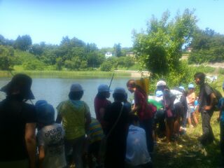 日吉小学校PTAの皆さんのおもてなしでお昼ご飯をいただいたあとは学校周辺の自然に親しむ活動を日吉小学校の子どもたちと一緒にします。