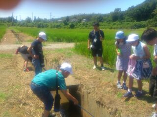 ザリガニ釣り、田んぼの生き物観察、葉の葉脈を薬品であぶり出してしおりを作るクラフトなど桜小の子どもたちにとってかけがえのない体験ができました。
